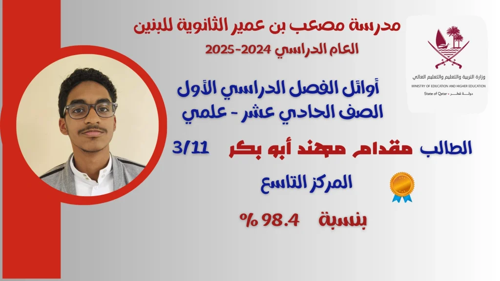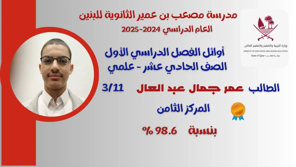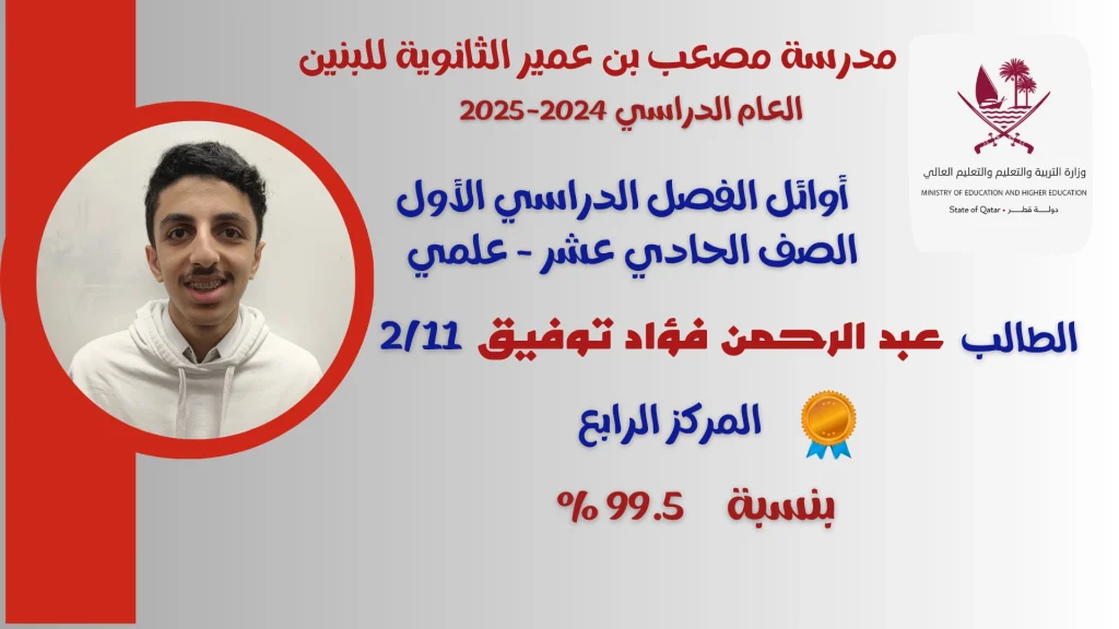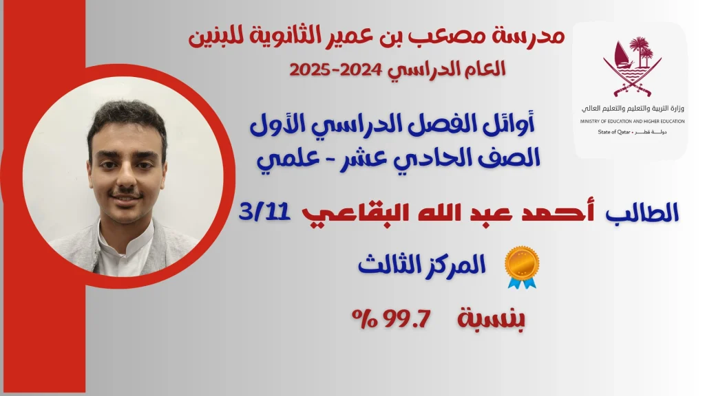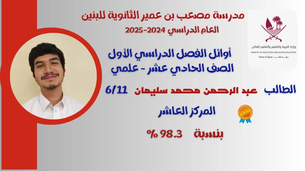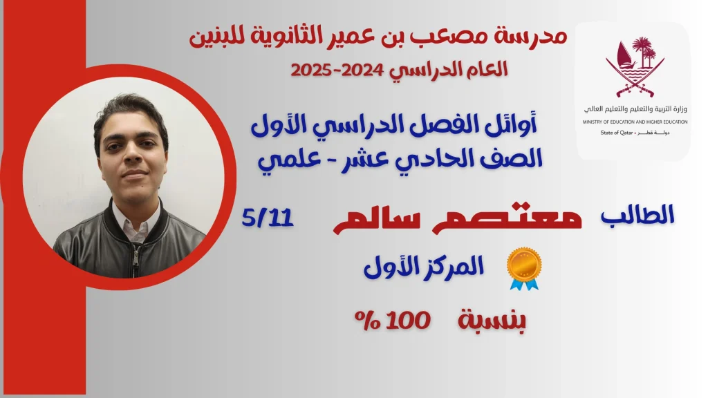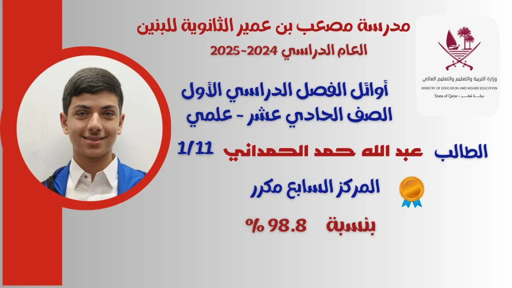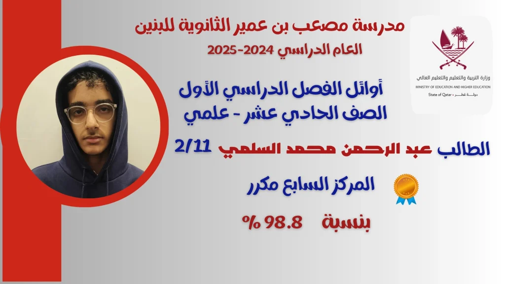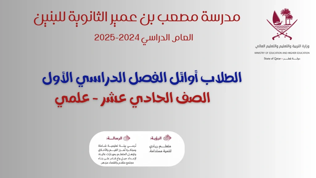 أوائل إختبارات نهاية الفصل الدراسي الأول – حادي عشر علمي