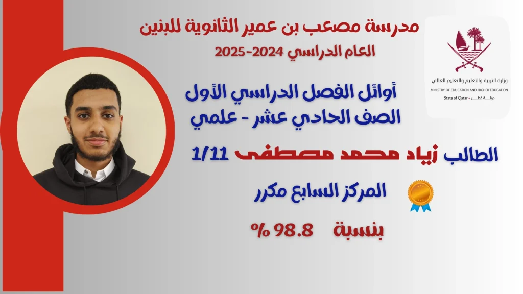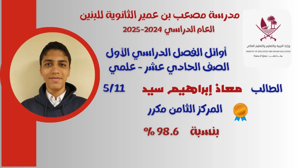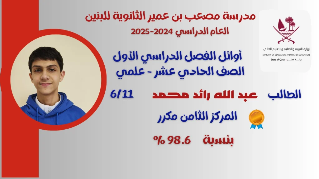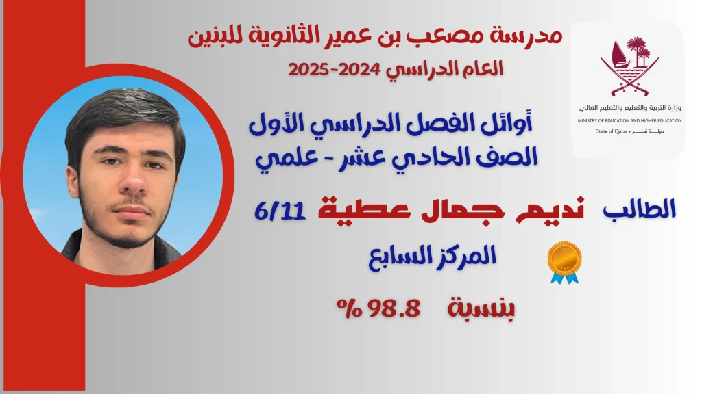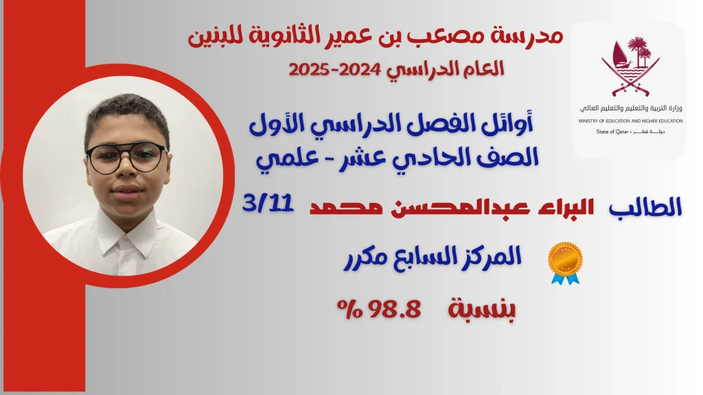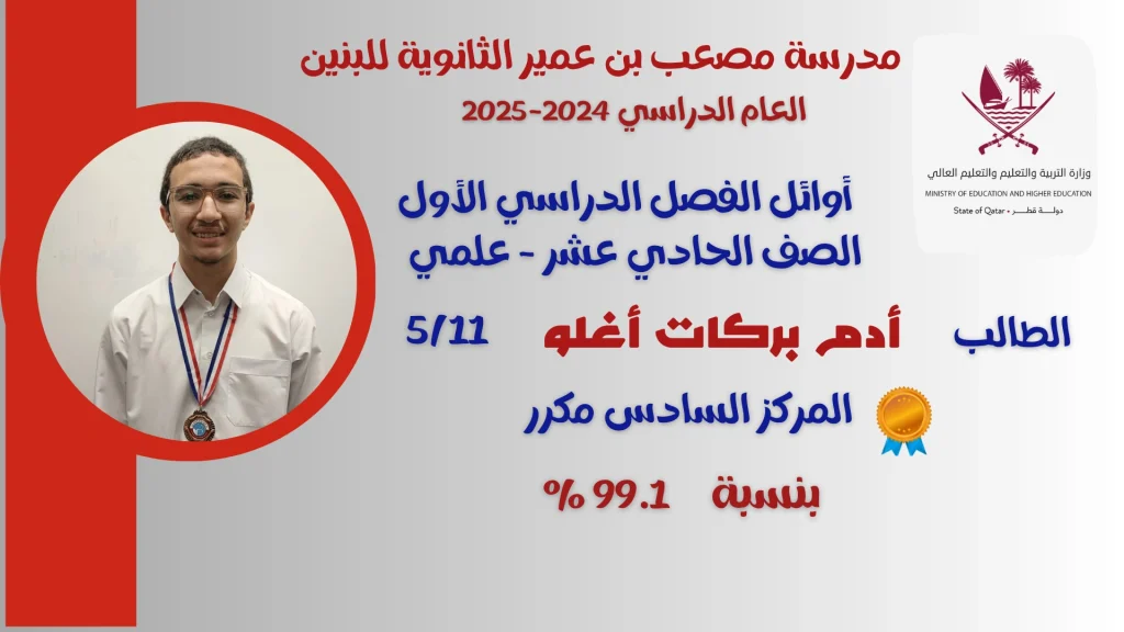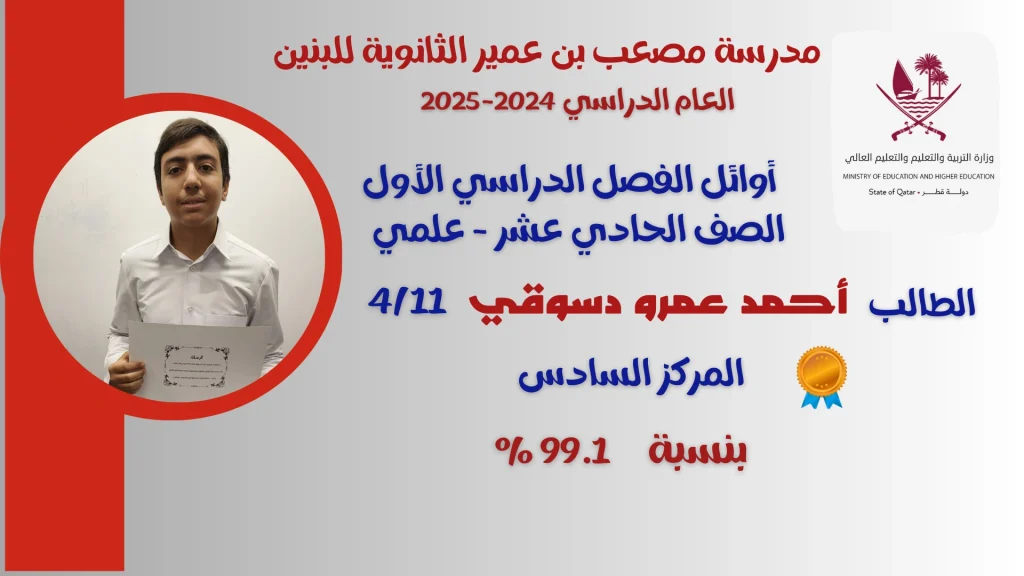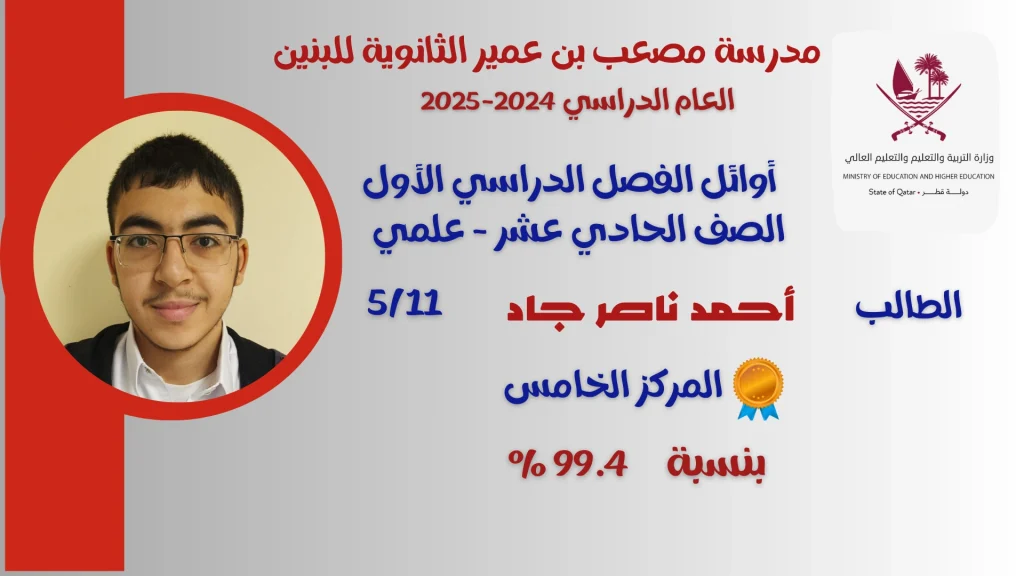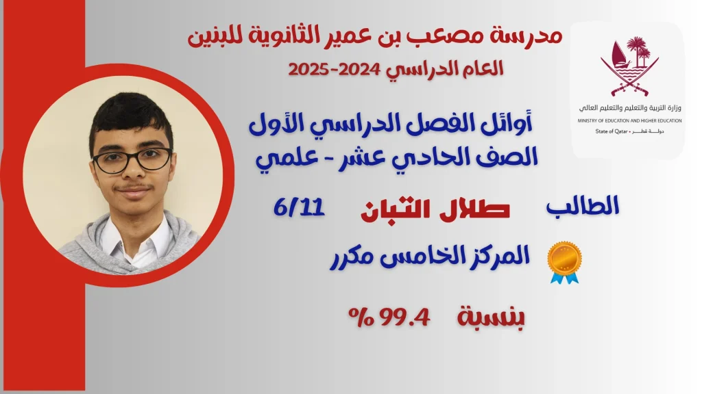 أوائل إختبارات نهاية الفصل الدراسي الأول – حادي عشر علمي