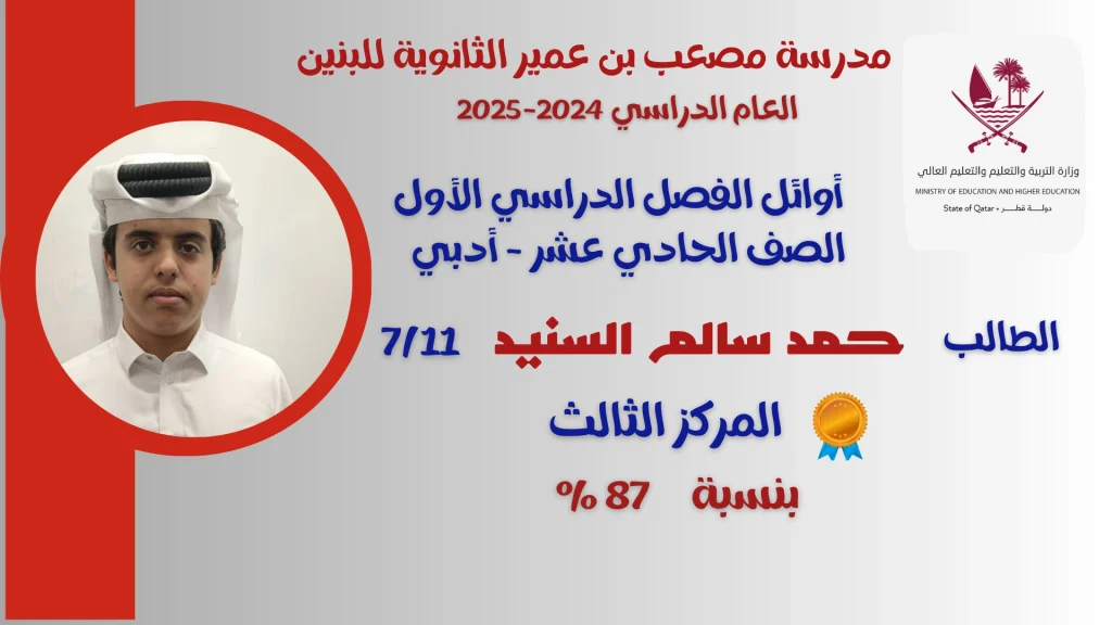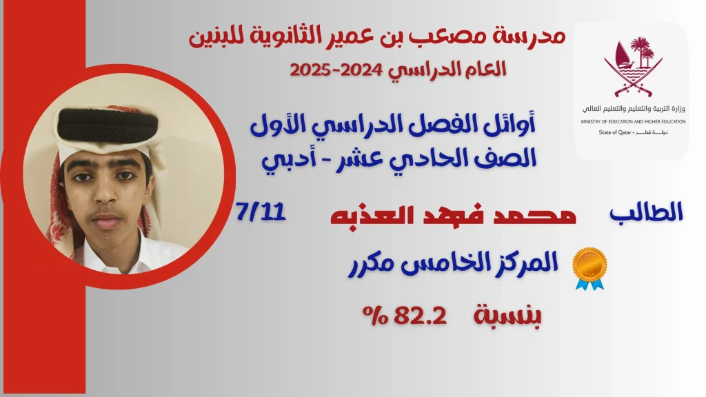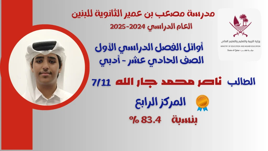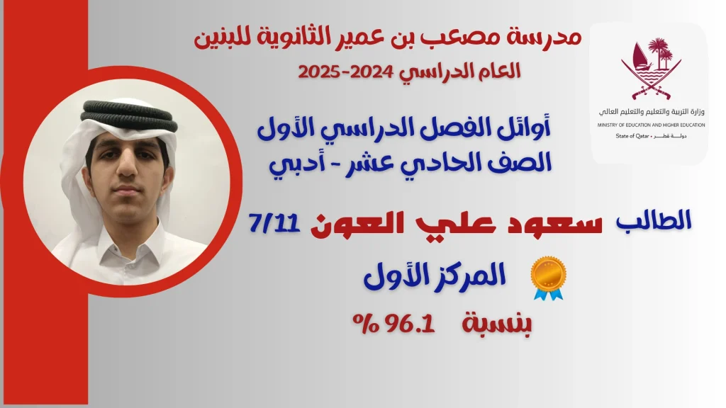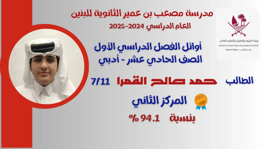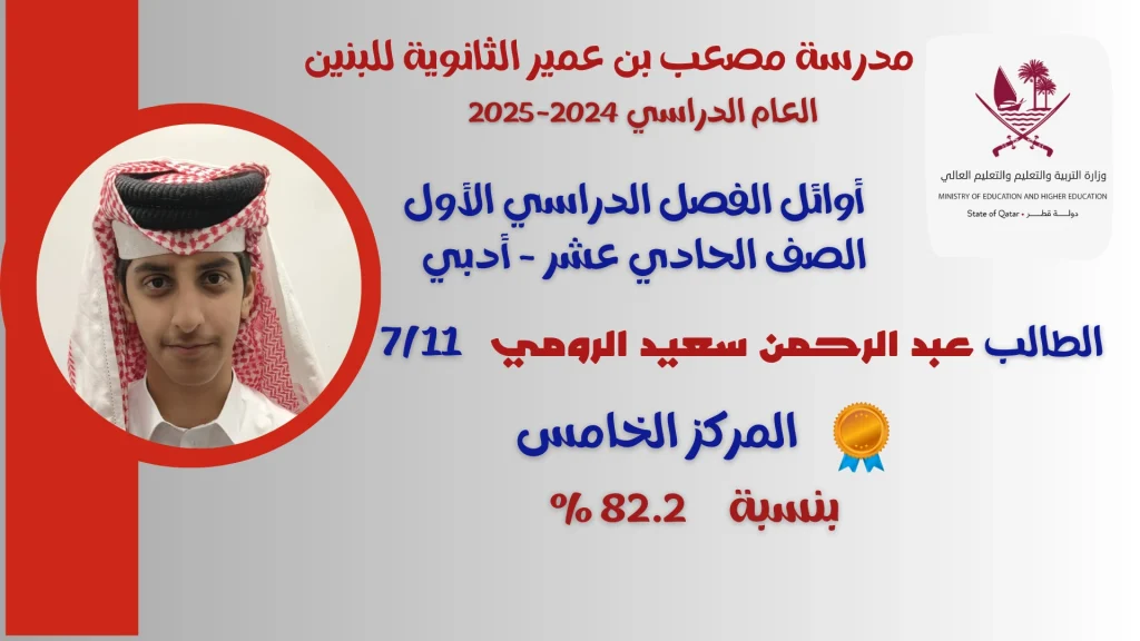 أوائل إختبارات نهاية الفصل الدراسي الأول – حادي عشر أدبي