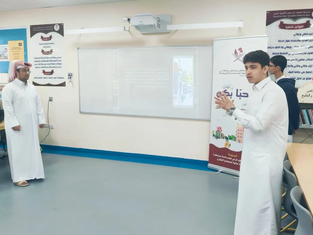 الدوحة قطر : انطلقت في مدرسة مصعب بن عمير – يوم الأحد 20 إبريل 2025 – فعاليات مناقشة مشاريع التخرج لطلاب الصف الثاني عشر، والتي تمثل تتويجًا لجهودهم الأكاديمية خلال المرحلة الثانوية